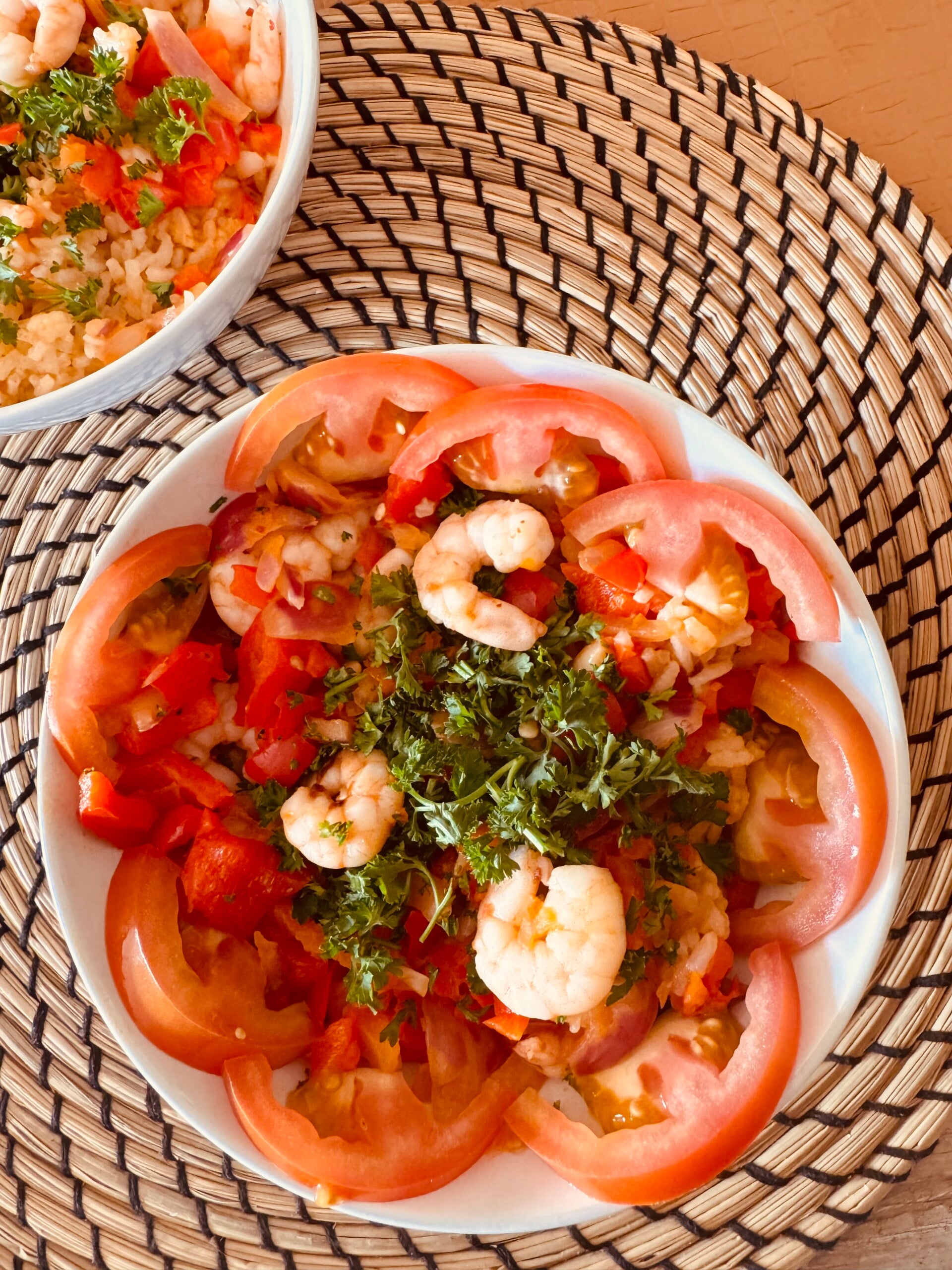 Pel de scampi’s en bak ze kort in een pan met een beetje Isio 4. Haal ze er terug uit en zet even opzij.